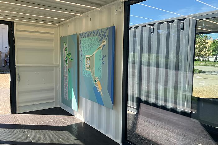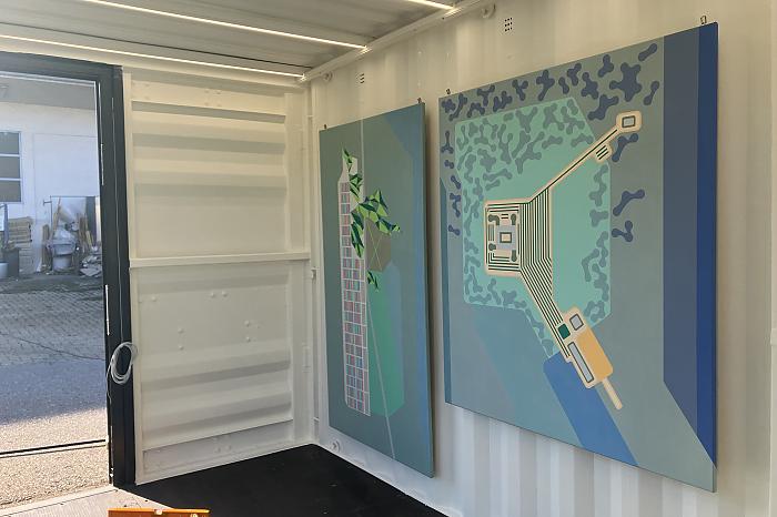 Formally, the works represent a further development of the artist’s "Landscape Logos” series, a landscape representation that appropriates contemporary spatial perceptions shaped by symbols, forms, and abbreviations.